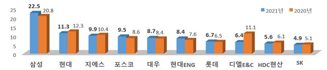 삼성물산은 2014년부터 8년 연속 시평액 1위 자리를 지켰다.