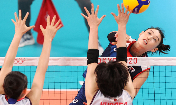 사진=뉴시스/ 김연경이 지난 31일 일본과의 조별리그 4차전에서 경기를 펼치고 있다.