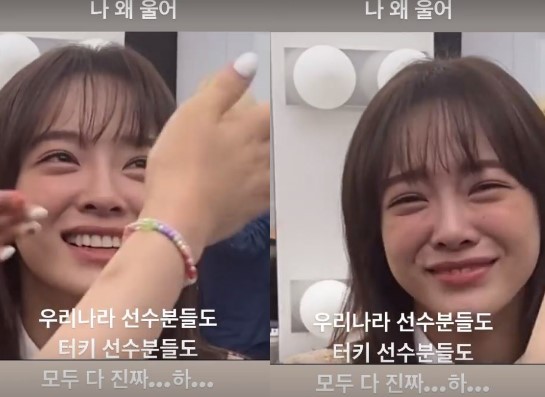 4일 김세정은 자신의 인스타그램 스토리에 “나 왜 울어. 우리나라 선수분들도 터키 선수분들도 모두 다 진짜...하...”라는 글과 함께 영상을 게재했다.