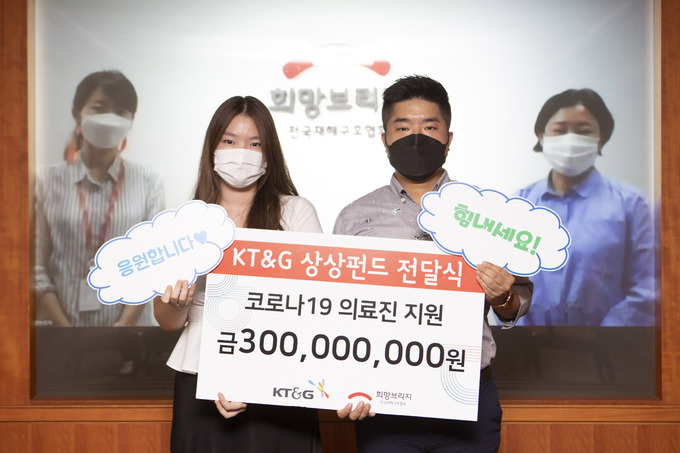 KT&G가 코로나19와 폭염 장기화로 어려움을 겪는 의료진과 사회취약계층을 위해 계열사인 KGC인삼공사·KT&G장학재단 등과 함께 총 15억원 상당의 지원금과 물품을 전달했다고 5일 밝혔다.