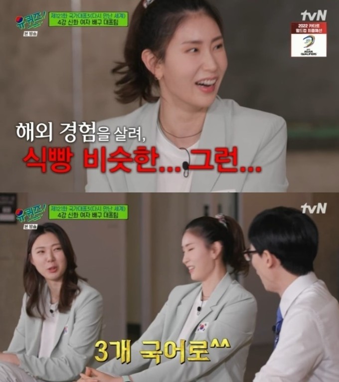 1일 방송된 tvN ‘유 퀴즈 온 더 블럭’(이하 ‘유퀴즈’) 2020 도쿄올림픽 국가대표 특집 3탄으로 꾸며진 가운데, 여자배구 대표팀 김수지, 양효진, 오지영 선수가 게스트로 출연했다.