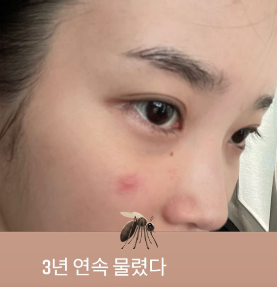5일 아이유는 자신의 인스타그램 스토리에 “3년 연속 물렸다”라는 글과 함께 한장의 사진을 게재했다.