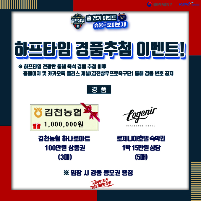 승격 기원 응원 메시지 이벤트에 참여한 팬들 중 추첨을 통해 1명에게 김천상무 친필사인 유니폼(선수 랜덤)을 증정한다.
