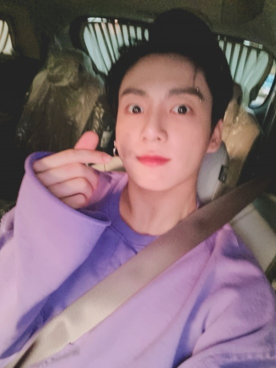 공개된 사진에는 차 안에서 카메라를 향해 손하트 포즈를 취하고 있는 정국의 모습이 담겼다. 흔들린 사진에서도 정국은 큰 눈망울과 귀여운 표정으로 훈훈한 비주얼을 자랑하고 있어 팬들의 마음을 설레게 한다.