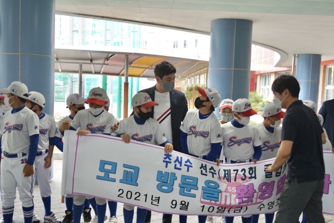 의미 있는 걸음도 내디뎠다. 구단과 논의 끝에 야구 꿈나무들을 위한 ‘드림 랜딩 프로젝트’를 진행하기로 한 것. 출발점으로 본인의 야구 뿌리이자 성공의 밑거름이 된 모교와 KBO리그에서 뛸 수 있는 기회를 준 인천을 동시에 후원하기로 했다. 지난 10일 직접 수영초, 부산중, 부산고를 방문했다. 후배들은 뜨겁게 환호했다. 앞 다투어 질문을 쏟아냈다는 후문이다. 추신수는 “감회가 새롭다. 후배들 중에서도 좋은 선수들이 많이 나왔으면 좋겠다”고 격려했다.