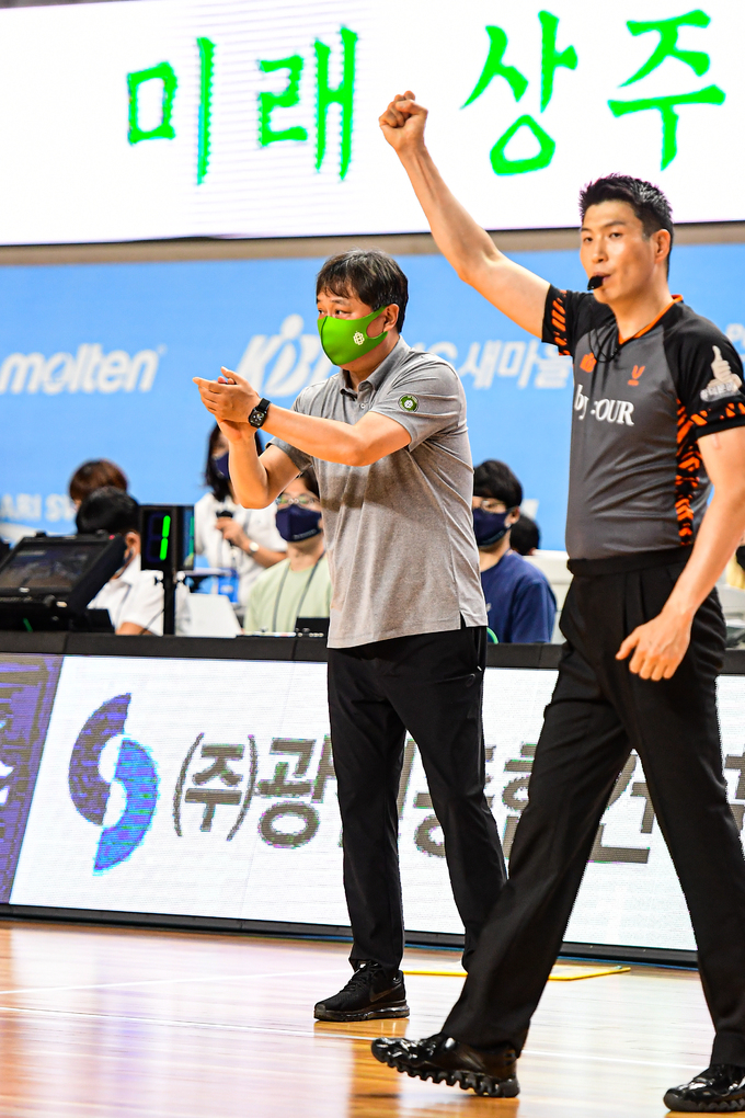 남자프로농구(KBL) DB 이상범 감독이 최선을 다해준 선수들에게 엄지손가락을 치켜세웠다.