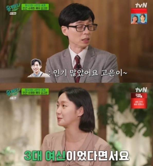 이어 유재석은 “동기들 사이에서도 고은 씨 인기가 어마어마했다고 그러더라”라고 물었고, 이에 김고은은 “도대체 누가 그러냐”고 묻고는 “나쁘진 않았다”고 답해 웃음을 안겼다.