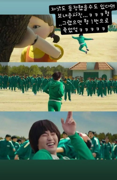 FT아일랜드 이홍기가 ‘절친’ 배우 김수현이 등장한 ‘오징어 게임’ 짤을 공개했다.
