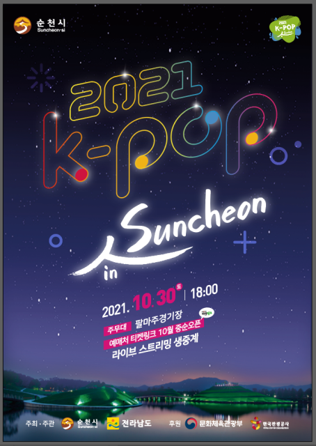 오는 30일 저녁 6시, 전라남도 순천시에 국내 최정상급 K-POP 스타들이 총출동한다. 이들은 팔마종합운동장에서 열리는 ‘2021 K-POP in Suncheon’에 참여한다.