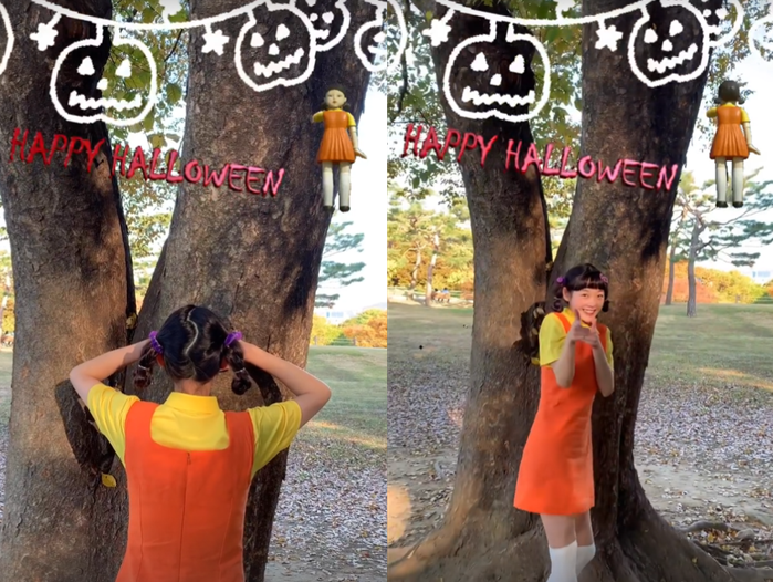 술래 인형의 의상을 완벽히 소화해 눈길을 끌었다.