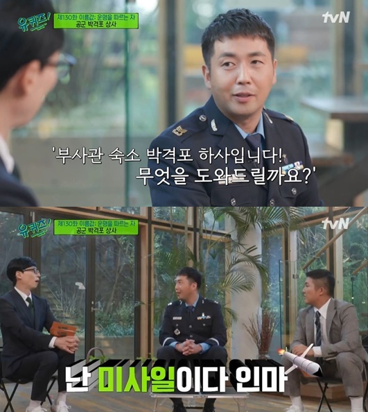 이날 게스트로 공군20전투비행단의 박격포 상사가 등장했다. 박격포 상사는 올해로 군 복무 19년 차라며“항공기 지상 장비 특기라고 정비 쪽 일을 하고 있다. 공중에서 항공기들이 기동하기 위해 지상에서 점검하는 장비들을 점검하고 관리한다”고 말했다.