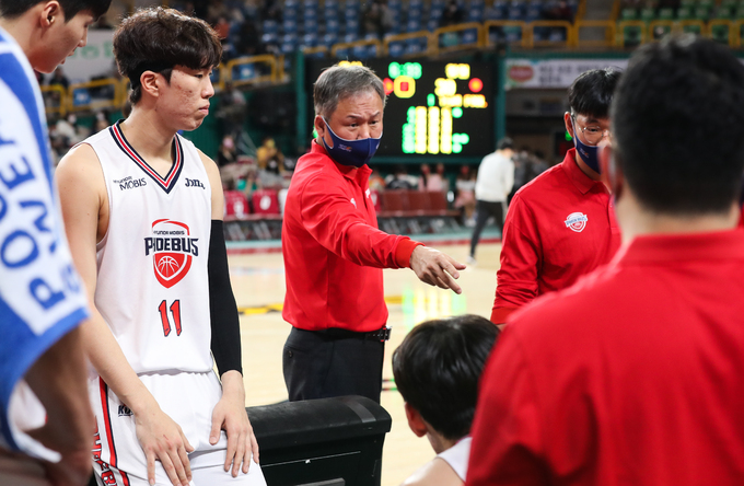 사진=KBL 제공/ 작전 지시 중인 유재학 감독