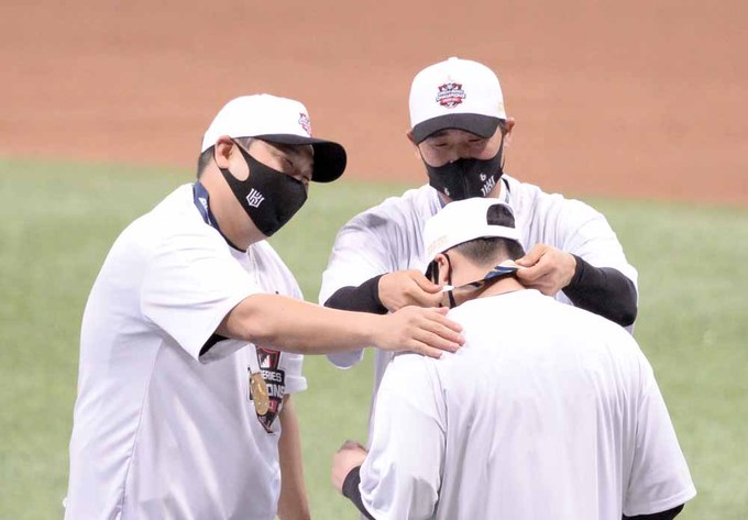 [SW포토]유한준에게 메달 걸어주는 박경수 기사입력 2021-11-18 23:27:25 기사수정 2021-11-18 23:27:24 글씨 크기 선택 가장 작은 크기 글자 한 단계 작은 크기 글자 기본 크기 글자 한 단계 큰 크기 글자 가장 큰 크기 글자 프로야구 kt 박경수(오른쪽 위)가 18일 고척스카이돔구장에서 열린 2021한국시리즈 4차전 두산과의 경기에서 승리 후 동료 유한준에게 메달을 걸어주고 있다. 고척=김두홍 기자 kimdh@sportsworldi.com 2021.11.18. [ⓒ 세계비즈앤스포츠월드 & sportsworldi.com, 무단전재 및 재배포 금지] 메뉴보기 페이스북 공유 트위터 공유 url 공유 더보기