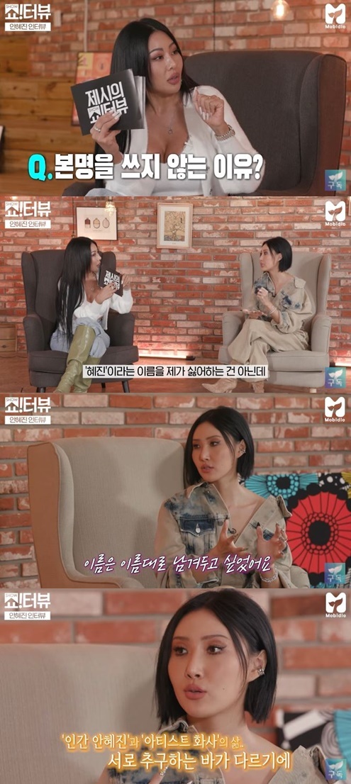 이에 화사는 “혜진이라는 이름을 싫어하는 건 아닌데 이름은 이름대로 남겨두고 싶었다”며 “행동도 그렇고, 인간으로서의 나와 아티스트로서의 내가 추구하는 바가 다르다”고 설명했다.