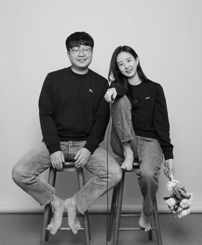 공개된 사진에서 박휘순과 아내는 깍지 손을 낀 채 포즈를 취하고 있다. 커플 티셔츠와 청바지를 맞춰 입고 애정 어린 눈빛으로 서로를 바라보는 두 사람의 행복한 모습이 훈훈함을 자아낸다.