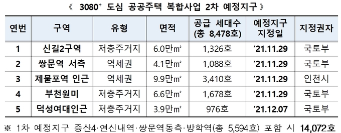 국토교통부는 ‘3080+ 대도시권 주택공급방안’(2·4 대책)에 따라 관련 사업 후보지로 선정된 신길2구역·도봉구 쌍문역 서측·제물포역 인근·부천 원미사거리 북측 등 4곳을 오는 29일, 덕성여대 인근을 다음 달 7일 각각 2차 예정지구로 지정한다고 28일 밝혔다.