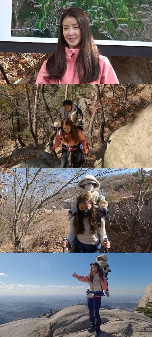 배우 이시영이 아들 정윤이를 업고 북한산 등반에 나선다.