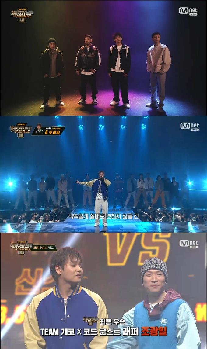 ‘쇼미더머니10’ 파이널 생방송에서는 래퍼 조광일이 최종 우승자로 호명되며 '쇼미' 10년의 역사로 마스터피스를 완성했다. 또한, 여성 래퍼 최초로 파이널에 진출한 신스가 준우승에 오르며 프로듀서 개코&코드 쿤스트 팀에서 1위와 2위를 동시에 배출하는 새로운 역사가 쓰여졌다. 랩에 대한 열정이 남달랐던 두 명의 래퍼를 서포트하기 위해 최선을 다했던 두 프로듀서도 기쁨의 눈물을 흘리며 그 어느 때보다 힙합의 본질에 집중한 열 번째 시즌을 마무리했다.