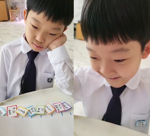 공개된 사진에는 사다리 타기 게임에 한창인 아들 용희 군의 모습이 담겨있다. 넥타이와 흰색 셔츠 등 교복을 입은 용희는 한층 의젓해진 비주얼로 눈길을 끌었다.