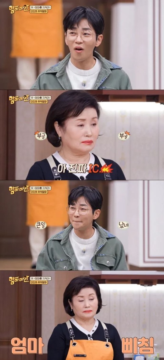 어머니와의 추억과 음식들을 돌아보며 감동을 안겼던 그동안의 딸, 아들과는 달리 딘딘은 엄마 음식에 대한 촌철살인 평가도 아끼지 않는다. 그는 “엄마 음식이 맛이 없어서 기억이 안 난다”라고 팩트 폭격을 해 웃음을 유발한다.