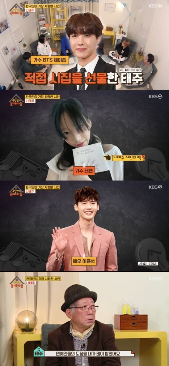 시인 나태주가 방탄소년단 제이홉, 소녀시대 태연, 배우 이종석과의 인연을 공개했다.