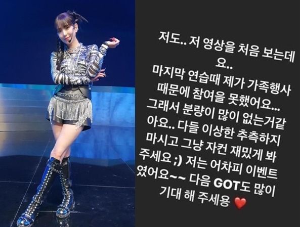 이어 “그래서 분량이 많이 없는 거 같아요. 다들 이상한 추측하지 마시고 그냥 자컨(자체 제작 콘텐츠) 재밌게 봐주세요”라며 “저는 어차피 이벤트였어요~~다음 GOT도 많이 기대해주세요”이라고 말했다.