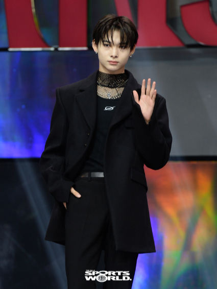 엔하이픈 니키가 포즈를 취하고 있다.