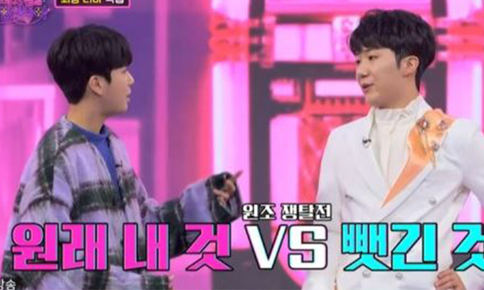 이날 남승민은 “원조 국민 손자, 남승민 인사 올리겠다”며 인사했다. 그러자 정동원은 벌떡 일어나 “대결에서 제가 이겼지 않았냐”며 국민 손자 타이틀에 대한 소유권을 주장했고, 남승민은 “본부장에서 소대장으로 내려오지 않았느냐. 그러니까 오늘 대결을 하자”고 제안했다.