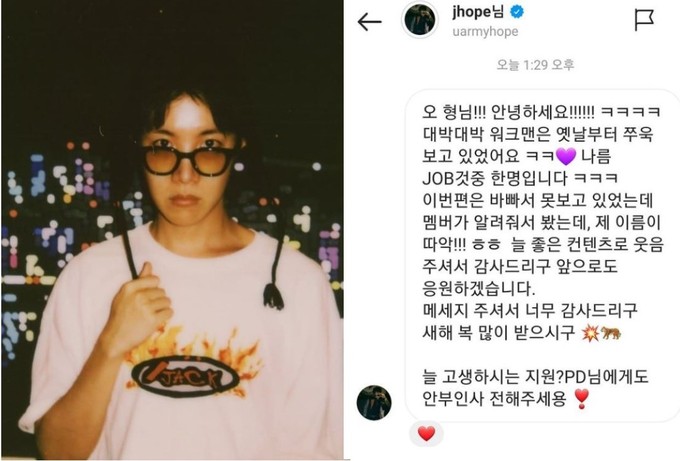방탄소년단 제이홉이 ‘워크맨’ 애청자임을 인증했다.