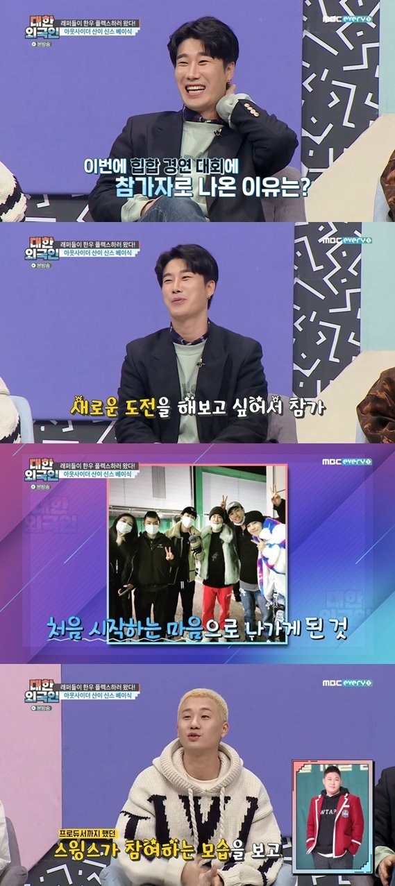 12일 방송된 MBC에브리원 ‘대한외국인’에는 ‘쇼미더 한우’ 특집으로 꾸며진 가운데, 래퍼 아웃사이더, 산이, 베이식, 신스가 게스트로 출연했다.
