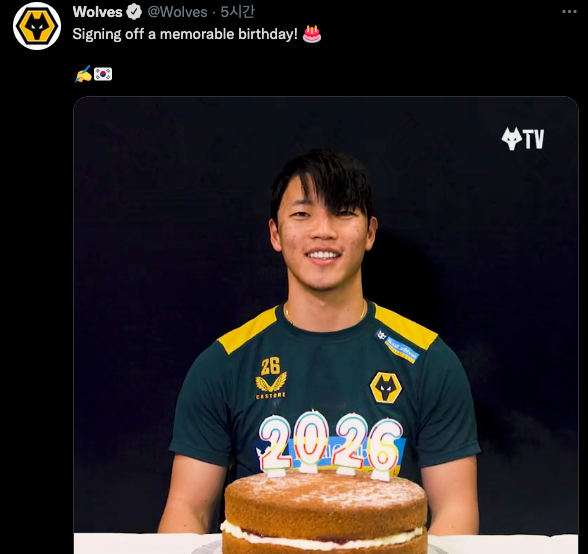 황희찬은 올해 만 나이로 26세다. 생일도 마침 1월 26일, 계약 기간 역시 2026년까지인 점을 고려해 생일 당일인 26일에 완전 영입 소식을 전했다. 황희찬의 등번호도 26번이다. ‘26’이라는 숫자 맞춤으로 기쁜 소식을 전한 것.