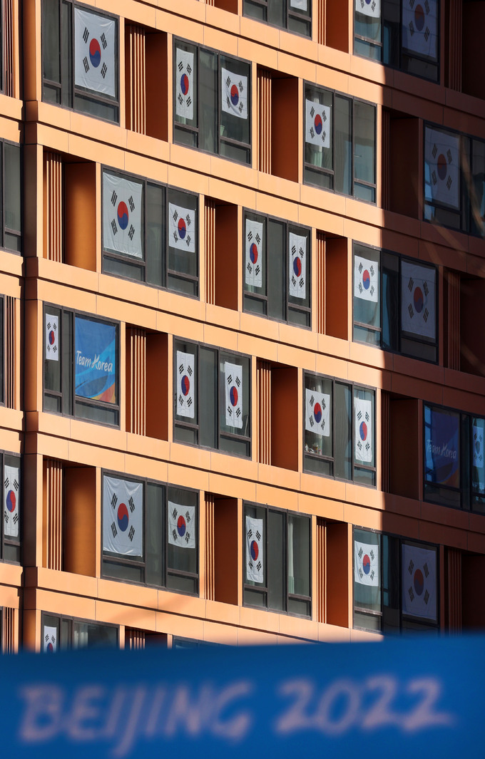 특별한 현수막은 걸지 않았다. 한국은 지난해 2020 도쿄하계올림픽 당시 선수단이 머무는 건물 외벽에 큼지막한 현수막을 걸었다. ‘신에게는 아직 5천만 국민들의 응원과 지지가 남아있사옵니다’ 등의 문구를 적었으나 국제올림픽위원회(IOC)로부터 철거 요청을 받았다.