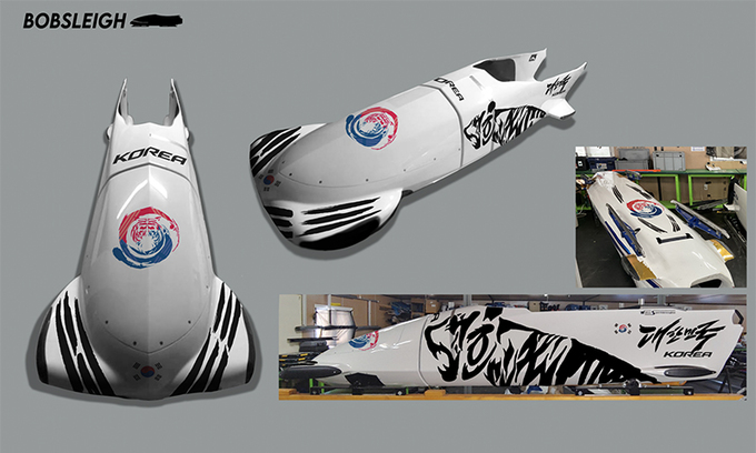 권동현 작가가 디자인한 강렬한 붓글씨 질감의 ‘대한민국’ 아트워크는 한국 스켈레톤 대표팀 썰매에도 활용됐다. 스켈레톤 썰매에는 우리나라 전통문양인 단청과 단원 김홍도의 ‘죽하맹호도’ 속 호랑이가 담겼다. 대한민국을 품은 대표팀은 오는 10일 스켈레톤 남자 대회를 시작으로 메달 획득에 나선다.