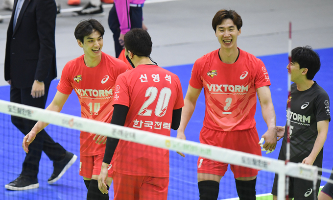남자프로배구 한국전력은 19일 수원체육관에서 열린 도드람 2021~2022 V리그 6라운드 대한항공과의 홈경기에서 세트스코어 3-1(25-20 25-21 16-25 25-23)로 승리했다.