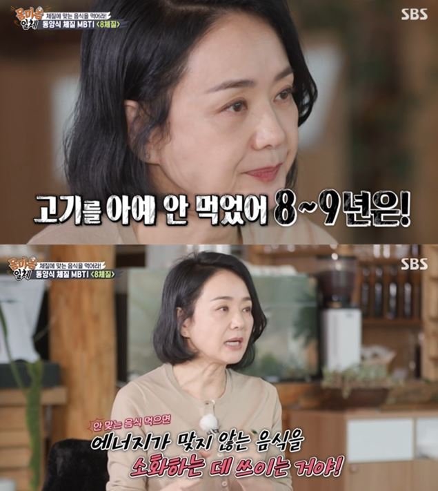 배종옥은 “내가 1년 내내 감기를 달고 산 적이 있는데 친구가 8체질 진단을 받아보라고 해서 받았다”며 “밥과 생선 위주의 식사를 했는데 이틀 만에 감기가 떨어졌다”고 했다.