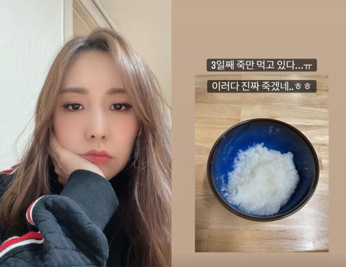 21일 간미연은 자신의 인스타그램 스토리에 “3일째 죽만 먹고 있다…ㅠ 이러다 진짜 죽겠네…ㅎㅎ”라는 글과 함께 사진 한장을 게재했다.