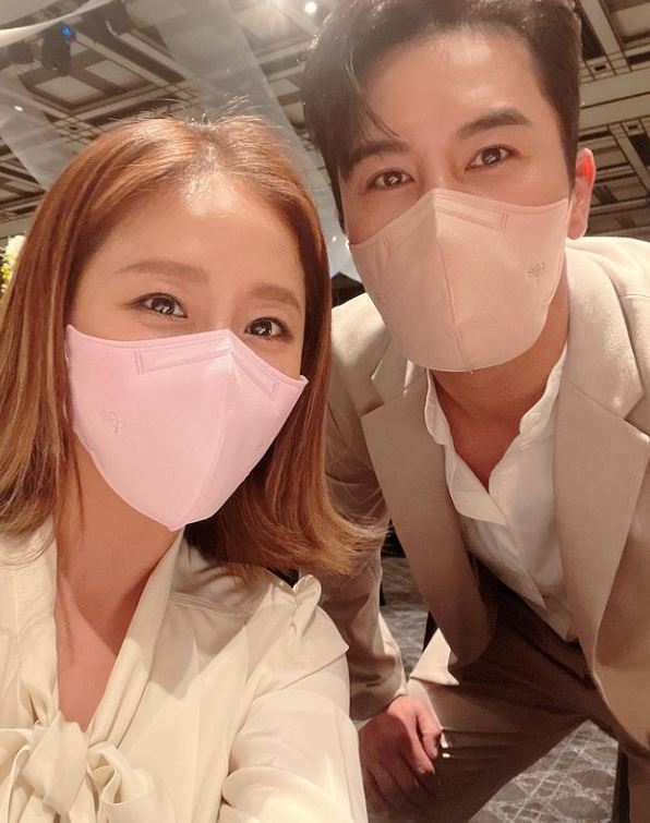 공개된 사진 속 신지와 장민호는 얼굴을 나란히 하고 인증샷을 남기는 모습이다. 장민호는 신지와 똑같은 마스크를 착용하고 특급 의리를 자랑했다.
