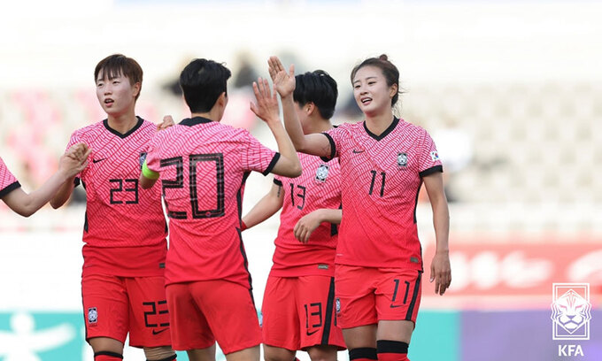 한국 여자축구가 베트남과 평가전에서 완승을 거뒀다.