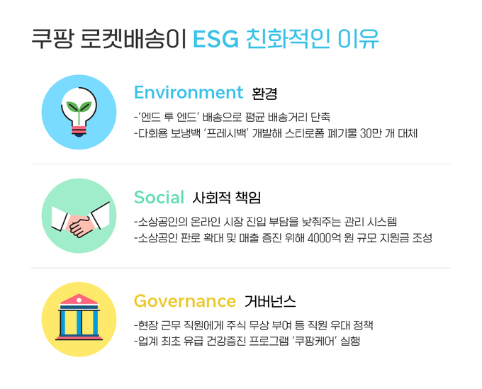쿠팡의 핵심 서비스인 ‘로켓배송’이 회사의 ESG(환경·사회·거버넌스) 경영에 기여하고 있다는 내용의 논문이 발간됐다. 쿠팡의 사업구조 자체가 ESG에 부합한다는 색다른 관점의 분석으로 유통업계의 주목을 받고 있다.