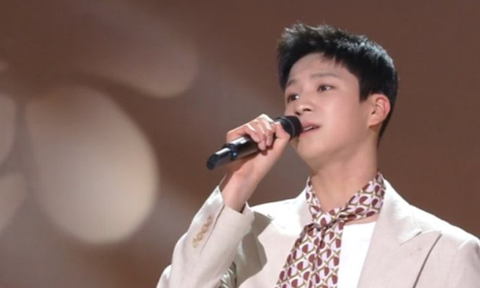 베이지 톤의 캐주얼한 수트 차림으로 무대에 오른 정동원은 애절한 감성으로 ‘들꽃’을 소화하며 한층 성숙해진 음악적 감수성을 뽐냈다.