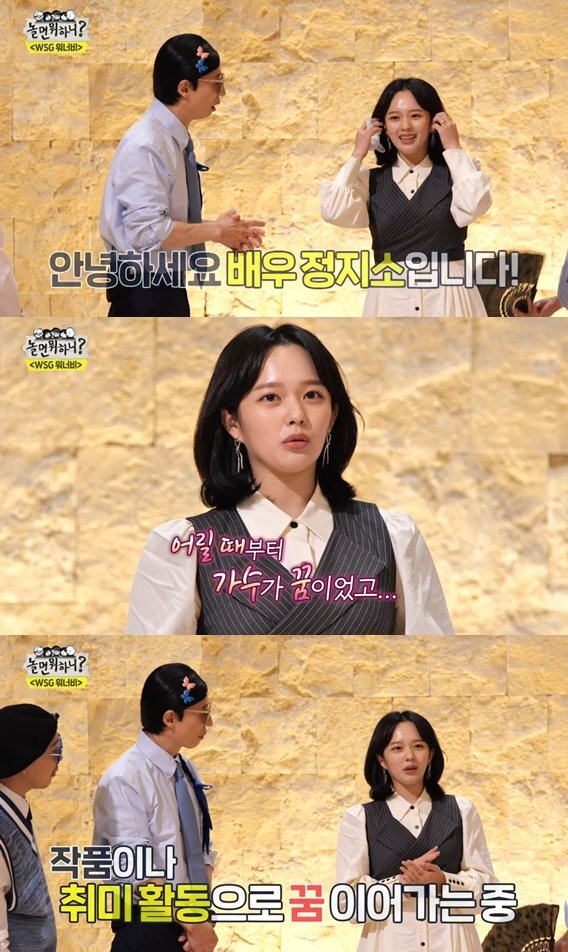 김숙은 정지소에게 “원래 노래를 하셨던 분이세요?”라고 물었고, 정지소는 “어렸을 때부터 가수가 꿈이었고, 배우 하면서도 음악이 들어간 작품이나 취미로 노래를 계속하고 있다”고 답했다.
