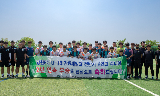 안산그리너스FC U18(이하 안산)가 K리그 주니어 A조 전기리그 우승팀 강원FC U18(이하 강원)를 위해 가드 오브 아너를 건넸다.