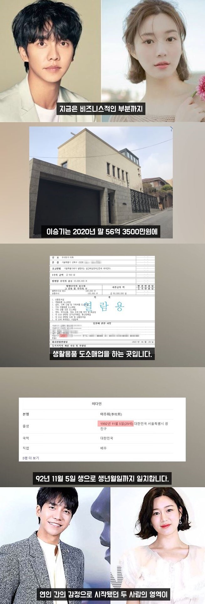 배우 이승기가 소유한 건물에 연인 이다인이 사내이사로 등기되어있다는 주장이 제기됐다.