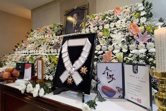 [SW포토]故송해 빈소에 놓인 금관문화훈장 기사입력 2022-06-08 18:51:10 기사수정 2022-06-08 18:51:10 글씨 크기 선택 가장 작은 크기 글자 한 단계 작은 크기 글자 기본 크기 글자 한 단계 큰 크기 글자 가장 큰 크기 글자 8일 오후 서울 종로구 서울대학교 병원 장례식장에 차려진 고(故) 송해의 빈소에 금관문화훈장이 놓여 있다. 22.06.08 사진공동취재단 [ⓒ 세계비즈앤스포츠월드 & sportsworldi.com, 무단전재 및 재배포 금지] 메뉴보기 페이스북 공유 트위터 공유 url 공유 더보기