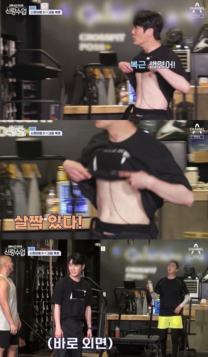 이어 영탁은 티셔츠를 걷어 올려 복근을 깜짝 인증했다. 그는 “복근이 생겼다”라고 했고, 실제로 뽀얀 속살에 복근이 살짝 올라와 놀라움을 안겼다.