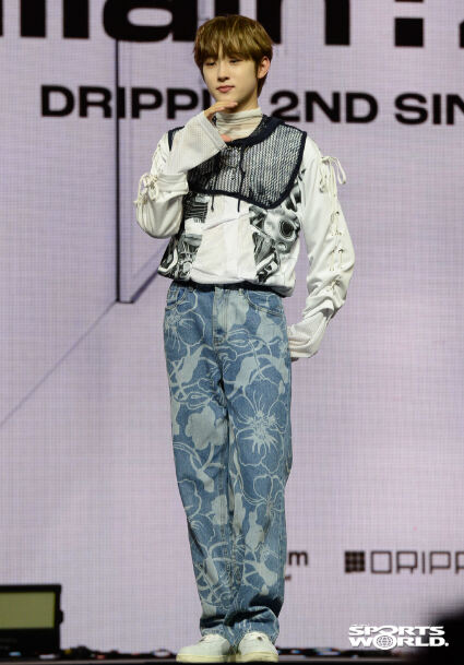 그룹 드리핀(DRIPPIN)의 민서가 15일 한남동 블루스퀘어 마스터카드홀에서 열린 두 번째 싱글 앨범 'Villain : ZERO' 쇼케이스에서 포즈를 취하고 잇다.