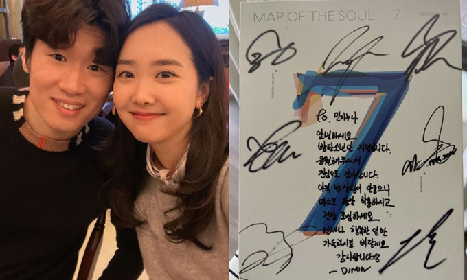 전 축구선수 박지성의 아내 김민지가 방탄소년단의 행보를 응원했다.