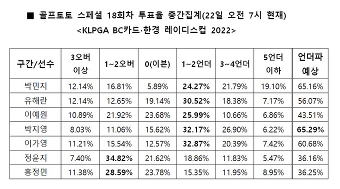 KLPGA ‘BC카드·한경 레이디스컵 2022’ 1라운드에서 국내 골프팬들은 박지영의 언더파 가능성을 가장 높게 내다봤다.