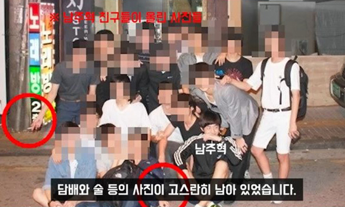 이와 함께 학창시절 사진들을 공개하기도 했다. 이진호는 “미성년자 신분인 학창시절임에도 담배와 술 등의 사진이 고스란히 남아있었다”며 “학창시절의 일탈은 충분히 있을 수 있다. 다만 노래방 사진, 술집 사진, 학교 사진 등의 내용을 보면 순수하고 약한 친구들의 모임이라고 보기에는 어렵다”고 밝혔다.