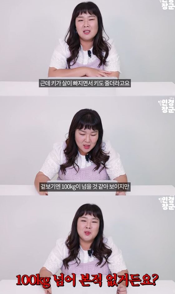 김민경은 “100kg 넘어본 적도 없다. 아무리 많이 나가도 두 자리는 유지했었다”고 해명했다.